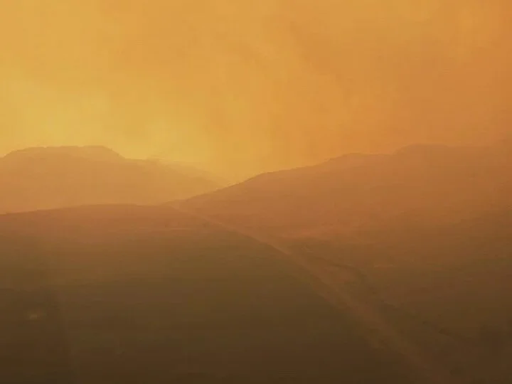 "The sun is so obscured that it is the colour of a blood orange all day. You can openly stare at the sun in the middle of the day ... everyone's working in this apocalyptic twilight."